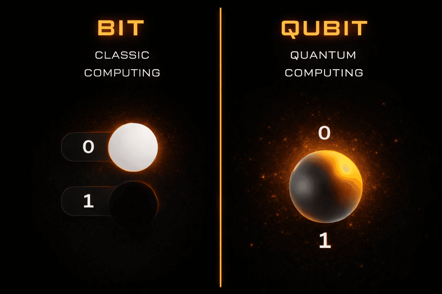 අපේ ගෙදර තියෙන laptop එකක් හෝ smart phone එකක් වැඩ කරන්නේ Bits වලින්. මේක හරියට switch එකක් වගේ; එක්කෝ ON (1), නැත්නම් OFF (0). මේ ක්රමය ගොඩක් විශ්වාසවන්ත වුණත්, හරිම සංකීර්ණ ගණිත ගැටලු විසඳන්න ගියාම මේවා හරිම හෙමින් වැඩ කරන්නේ.