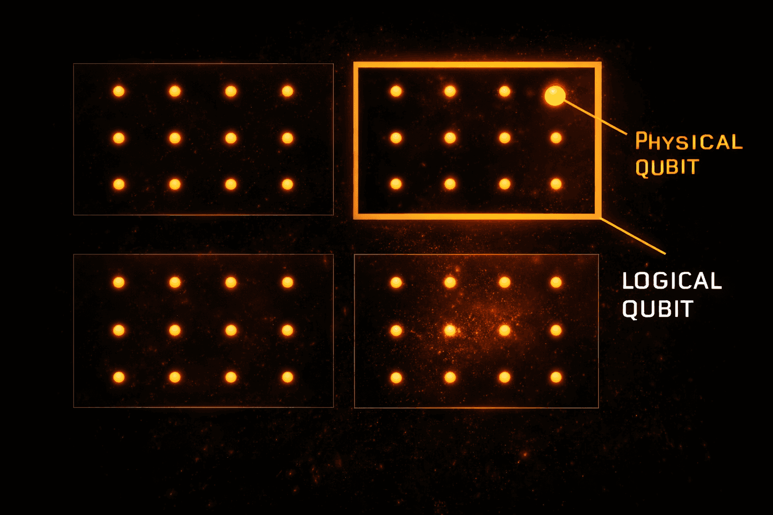 2. Logical Qubits: මේක තමයි නියම target එක. වැරදි සිද්ධ වෙන Physical qubits ගොඩක් එකතු කරලා හදන එක ශක්තිමත් qubit එකකට තමයි Logical qubit එකක් කියන්නේ.